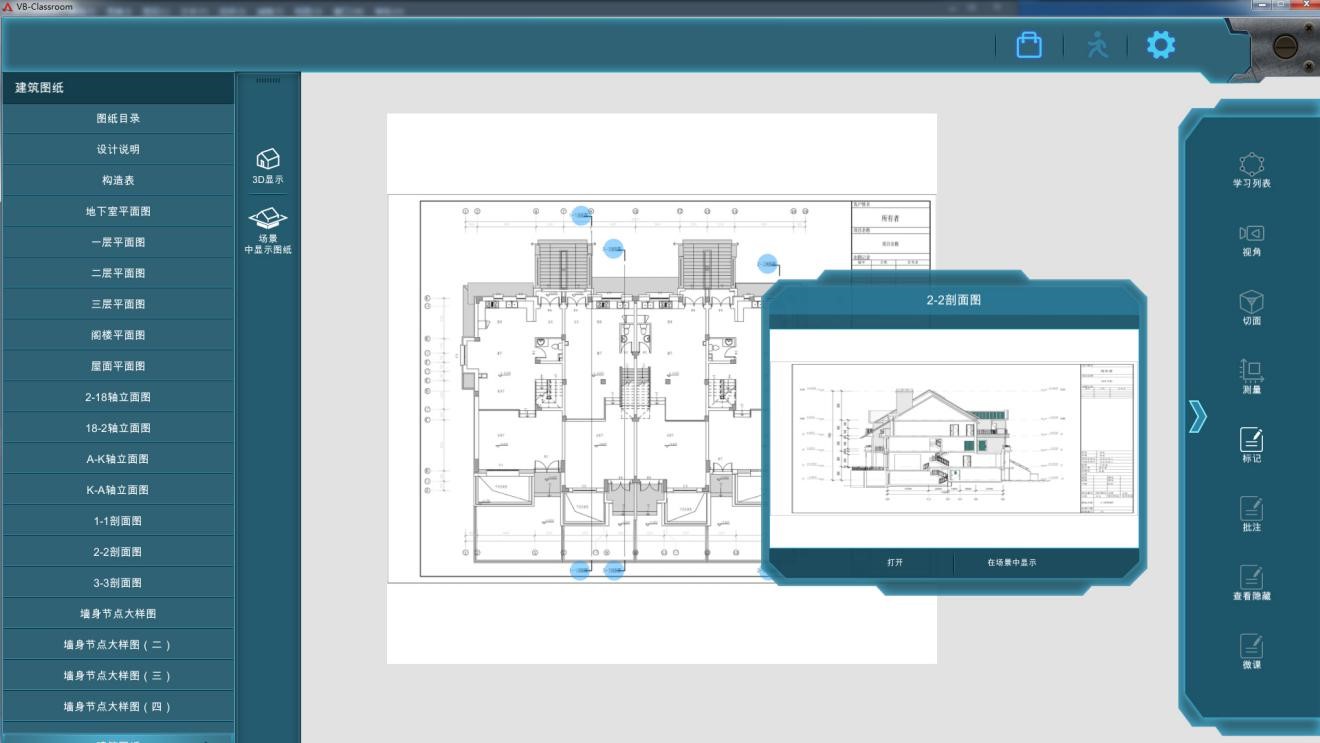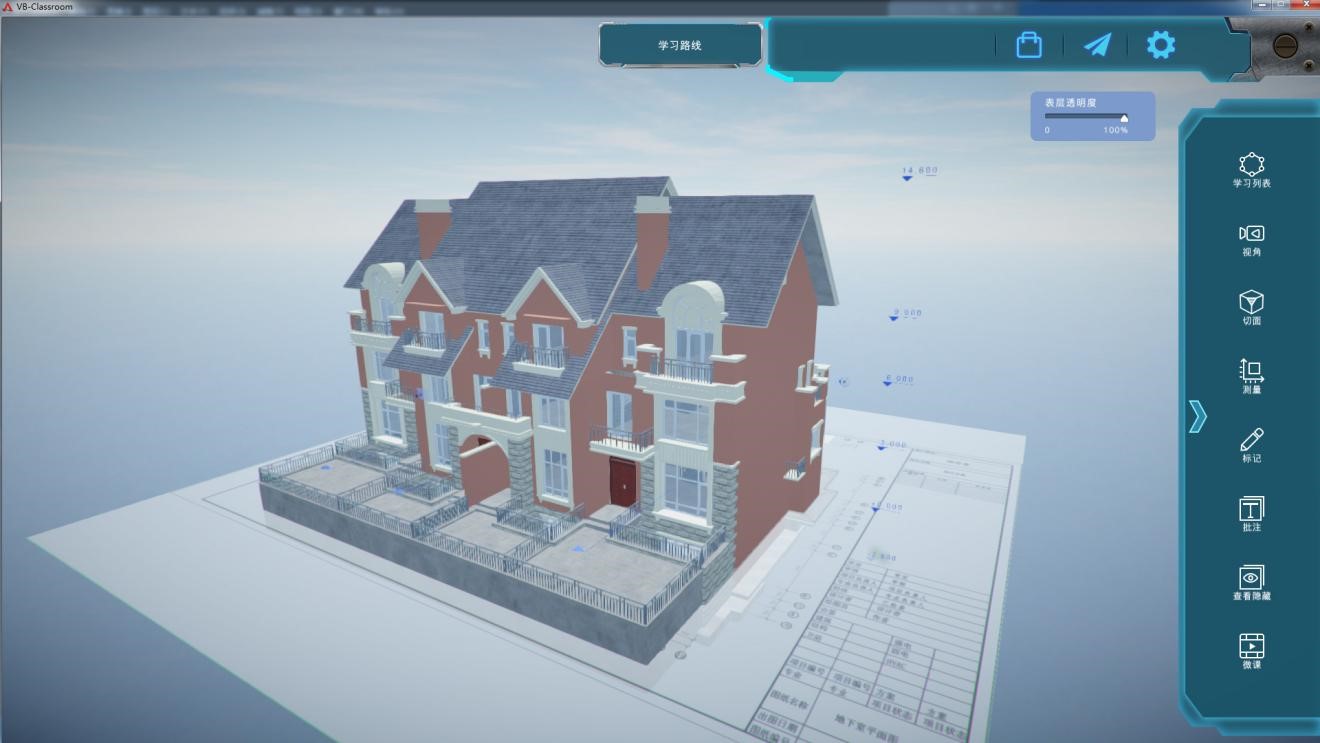 “VB-Classroom”可視化建筑課堂仿真教學(xué)軟件具有視、聽等多種感知的建筑虛擬環(huán)境,以直觀、仿真的三維形式,呈現(xiàn)施工、構(gòu)造等專業(yè)知識(shí),軟件密切結(jié)合實(shí)際工程,項(xiàng)目案例內(nèi)容來源于實(shí)際工程和國(guó)家標(biāo)準(zhǔn),在理論學(xué)習(xí)的基礎(chǔ)上,通過模擬實(shí)訓(xùn)實(shí)現(xiàn)交互學(xué)習(xí),增強(qiáng)專業(yè)知識(shí)的認(rèn)知與掌握。